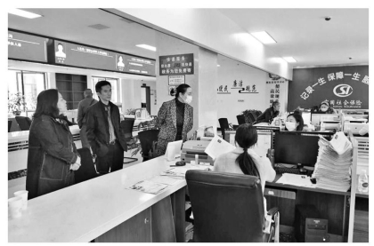 10月15日,市人社局党组成员、副局长吴燕萍(左三)到县调研指导政府服务工作