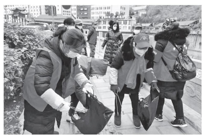 2020年12月19日,彝良县妇联招募巾帼志愿者40名,参与彝良县爱国卫生运动的活动(罗 原 摄)