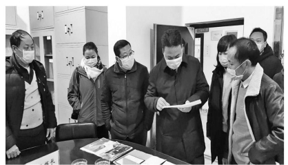 1月31日,副市长段登位(左四)到毛坪村检查疫情防控工作