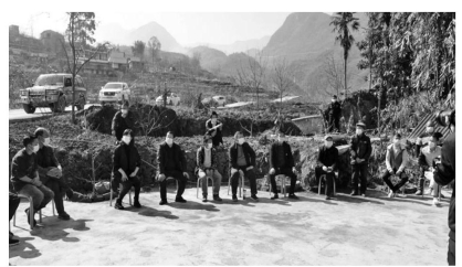 2月13日,县长陈祥彬(左六)到发路村召开稳岗就业工作座谈会