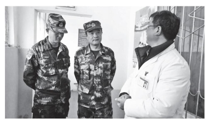 5月1日,中央军委政治部群众工作委员会办公室主任吴优上校(左二)到乡尖山村调研脱贫攻坚工作