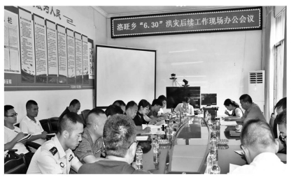 7月8日,召开洛旺乡“6.30”洪灾后续工作现场办公会议