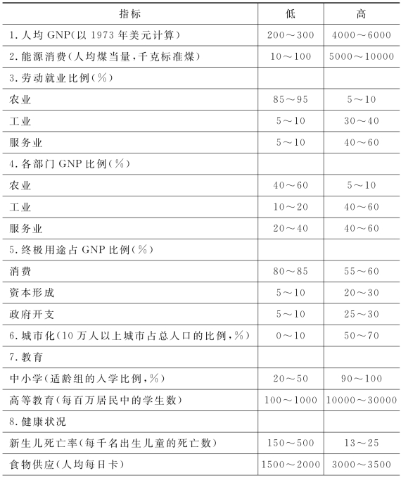 (3)20世纪60年代,美国学者坎特里尔(Hadley Cantril)在其《人类事务模式》一书中利用11个“结构变量”,设计了一种综合指数来测量14个国家的社会经济发展水平,以此来测量并比较各经济体的现代化程度。