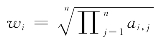 (1)计算每个指标的几何平均数:,其中ai,j为判断矩阵的元素。