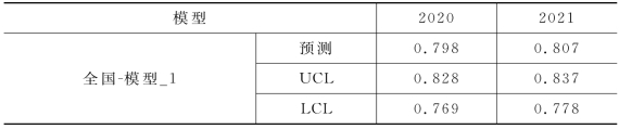 根据2010—2019年全国及各省份的现代化经济体系得分,通过时间序列指数平滑模型,本研究对2020—2021年全国的现代化经济体系发展水平进行了预测。