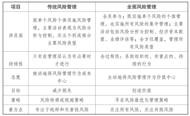 表2-1 传统金融风险管理和全面金融风险管理对比表