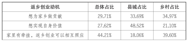 在乡村的调查数据中,“家里有牵挂,返乡创业可以相互照应”在10个原因选项中占比最高,占比为39.60%,说明对于大多数返回乡村创业的农民工而言,家庭的因素起到了明显的“拉力”作用,返乡创业不仅可以增收,更重要的是可以兼顾家庭。从返回乡村创业者的年龄调查数据中也可以看出,返回乡村创业的农民工年龄普遍偏大,他们这一代的农民工与80后的新生代农民工相比,外出打工赚钱而后回乡消费是目的,他们对家乡的依赖程度更高,因此,一旦选择放弃城市务工生活,他们更多地会考虑到家庭因素而选择回自己所在的乡村创业。在乡村创业中,排在第二、第三位的原因选项分别是“想为家乡做贡献”和“想实现自身价值”,说明选择返回乡村创业的农民工,他们希望通过自己外出打工获得的经验技能和资金,为家乡的发展出一份力。同时,根据马斯洛的需求理论对人的需求的分析,也可以说明农民工在外出打工获得经济收益之后,希望能够获得更高层次的心理满足,通过返乡创业实现自身的价值。