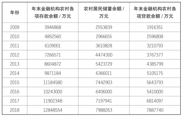 表5-1 2009—2018年全国年末金融机构农村各项存贷款余额统计
