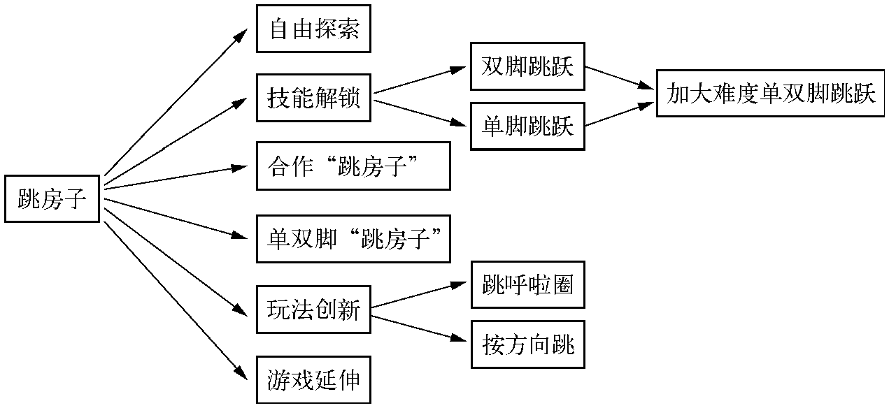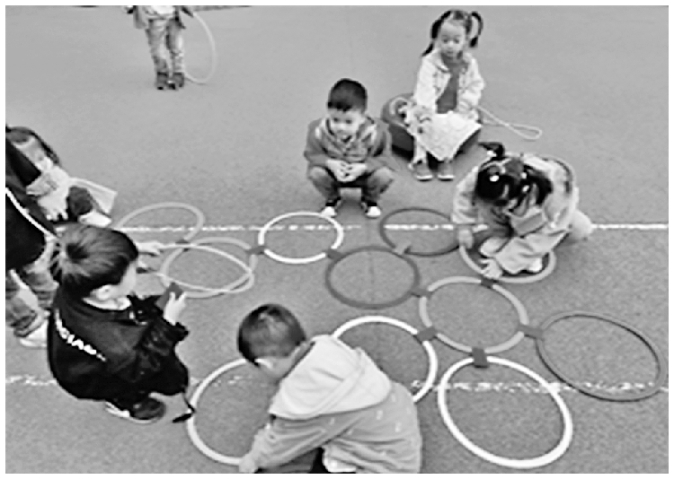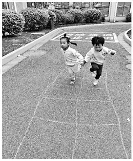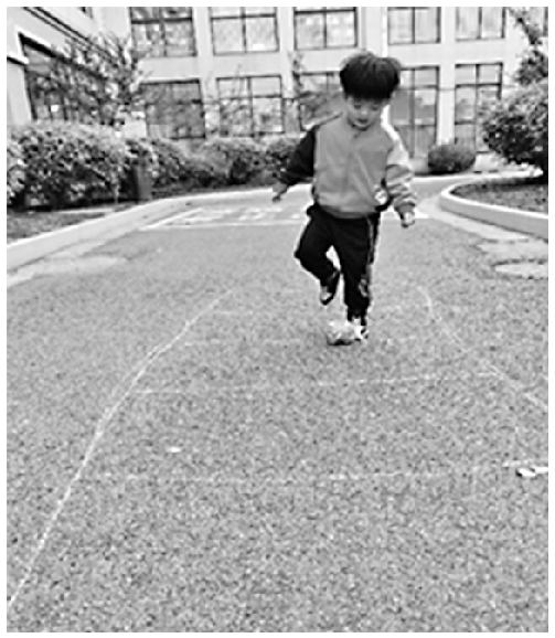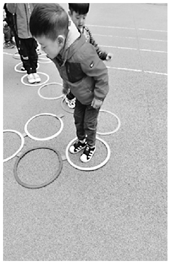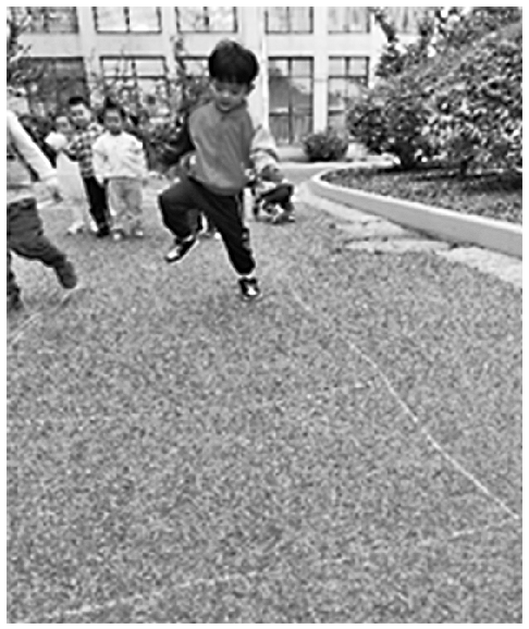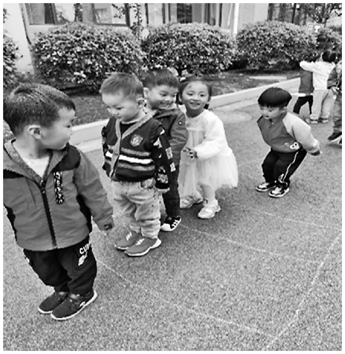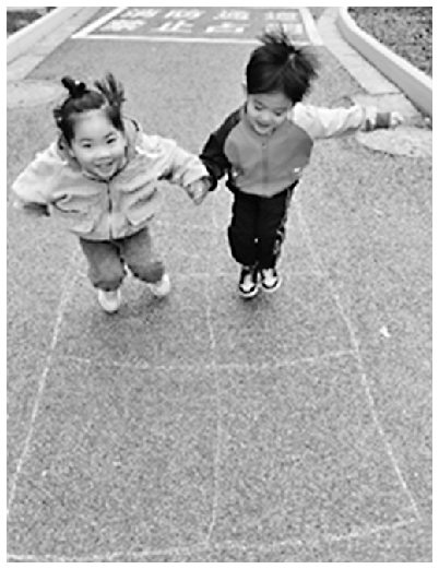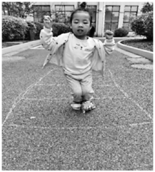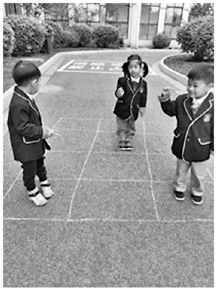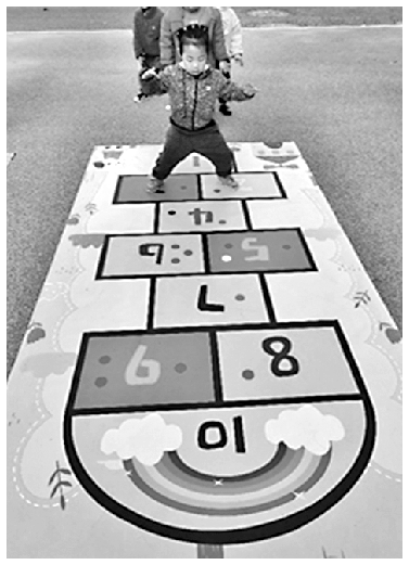 《指南》中指出:“利用多种活动发展身体平衡和协调能力。如:走平衡木,或沿着地面直线、田埂行走。玩跳房子、踢毽子、蒙眼走路、踩小高跷等游戏活动。”“跳房子”也叫“跳飞机”,是中国民间传统的体育游戏之一,趣味性、娱乐性极强,深受广大儿童的喜爱,在20世纪50年代至80年代相当普遍,当时在有些儿童游乐场、公园和小学操场等都会有“跳房子”的位置。“跳房子”操作简单,就算在一块空地上,只要有一根粉笔或树枝,小朋友都可以在地上画起“跳房子”的格子,然后一起玩。