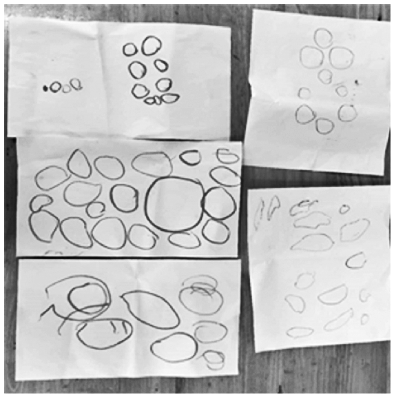 2. 在拥有跳呼啦圈经验的基础上,幼儿自己用笔设计跳呼啦圈“图纸”。