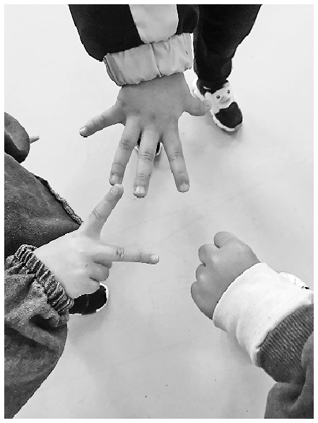 民间游戏“石头剪刀布”对孩子们来说,是一个非常熟悉的、简单又有趣的游戏。这个游戏最值得推荐的地方是它不需要任何的游戏辅助材料,孩子们会用手或者脚来玩“石头剪刀布”,在生活中遇到问题也会用“石头剪刀布”来解决。