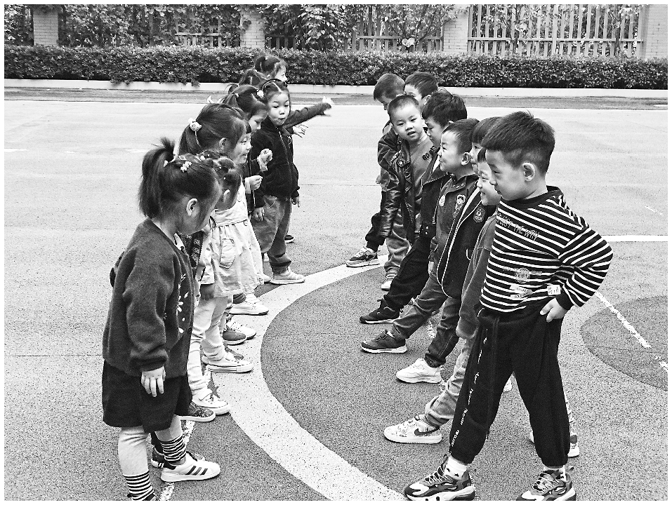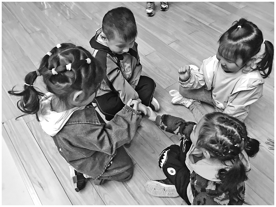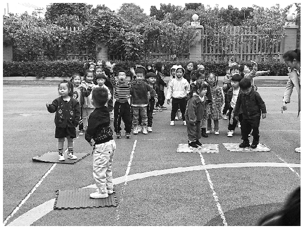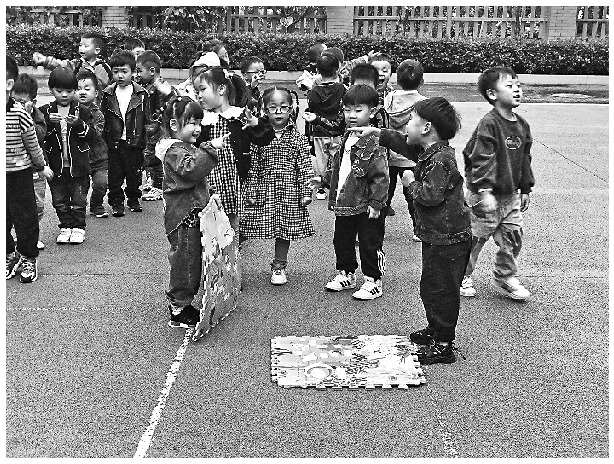 (2) 教师巡回指导,强调双方同时出拳,并鼓励遵守游戏规则的幼儿。