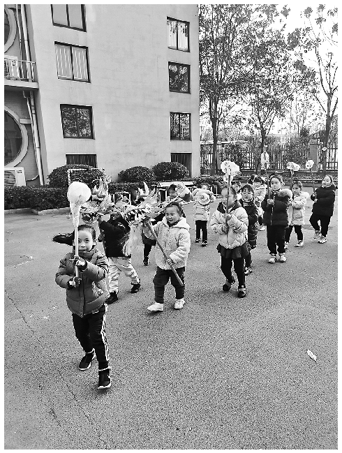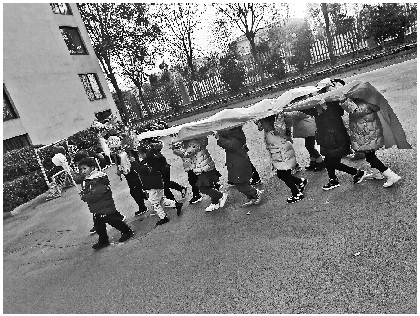 舞龙是我国传统的民族体育项目之一,是一项集健身、娱乐为一体的民间游戏。幼儿利用废旧材料制作的龙,不仅使自己产生了极大的兴趣,还使我们教师再次体验到:玩具材料不一定是最贵的才是最好的,价格不等于价值。在孩子们的世界里尤其如此,有时候,一块小石头胜过一辆汽车。因此,教师应充分发挥废旧材料的作用,制作出多种玩具,满足幼儿需求,让孩子从玩中得到发展。在舞龙活动中,让幼儿潜移默化地感受到民族文化,培养幼儿合作意识和协调能力。