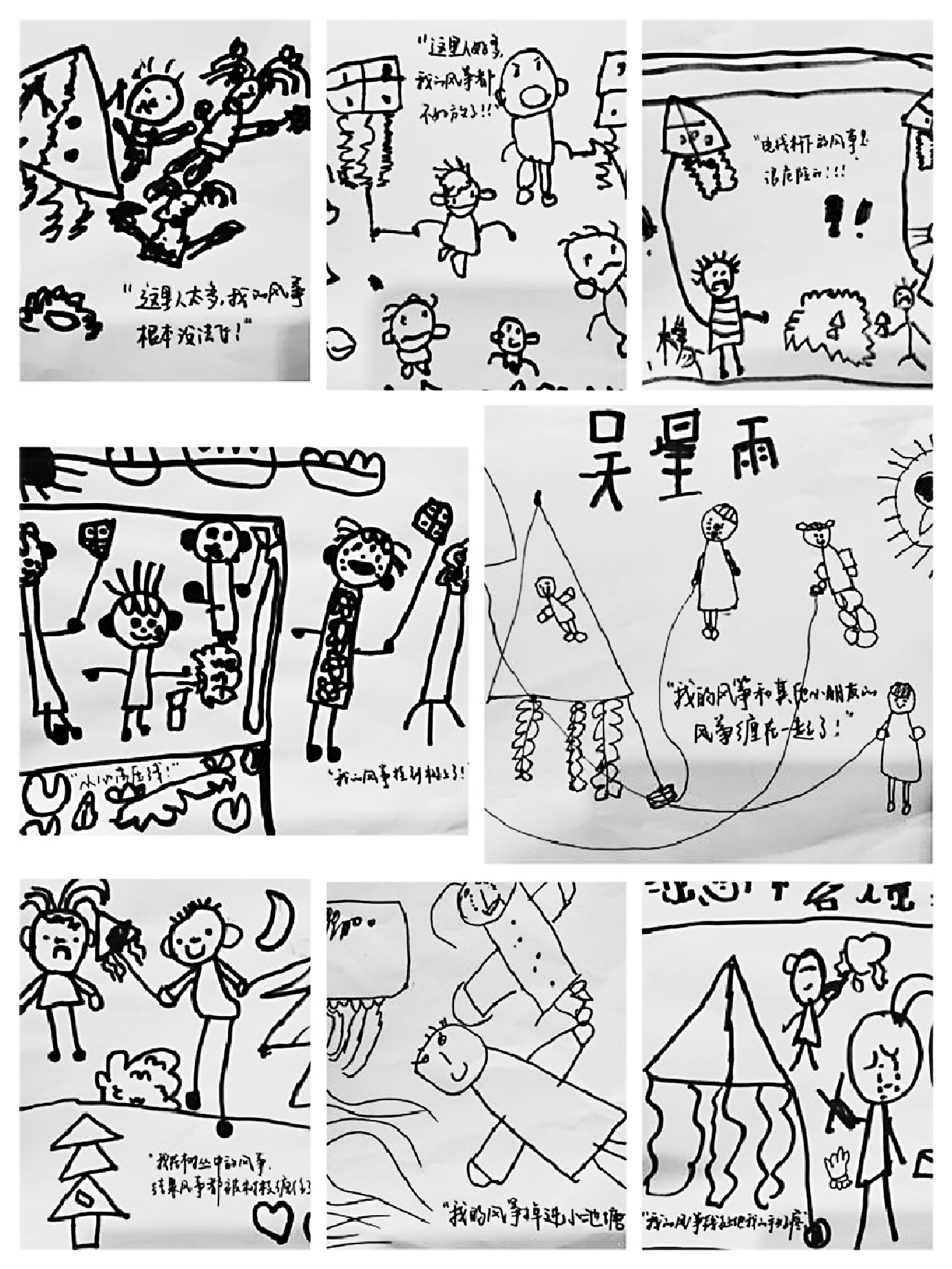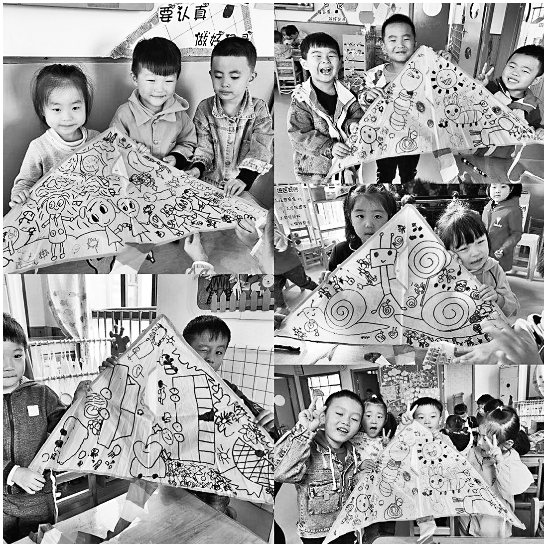 通过“放风筝”这一传统民间游戏的开展,幼儿在从了解风筝到制作风筝,再到放飞风筝的过程中,提高了对中国传统文化的认识,了解了各式各样的风筝和风筝的制作方法,体验到了反复尝试并成功制作风筝的愉悦与快乐。