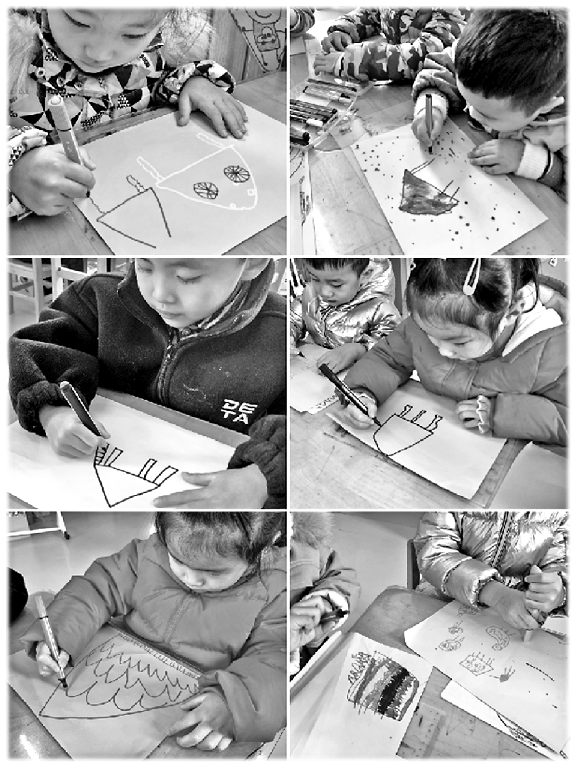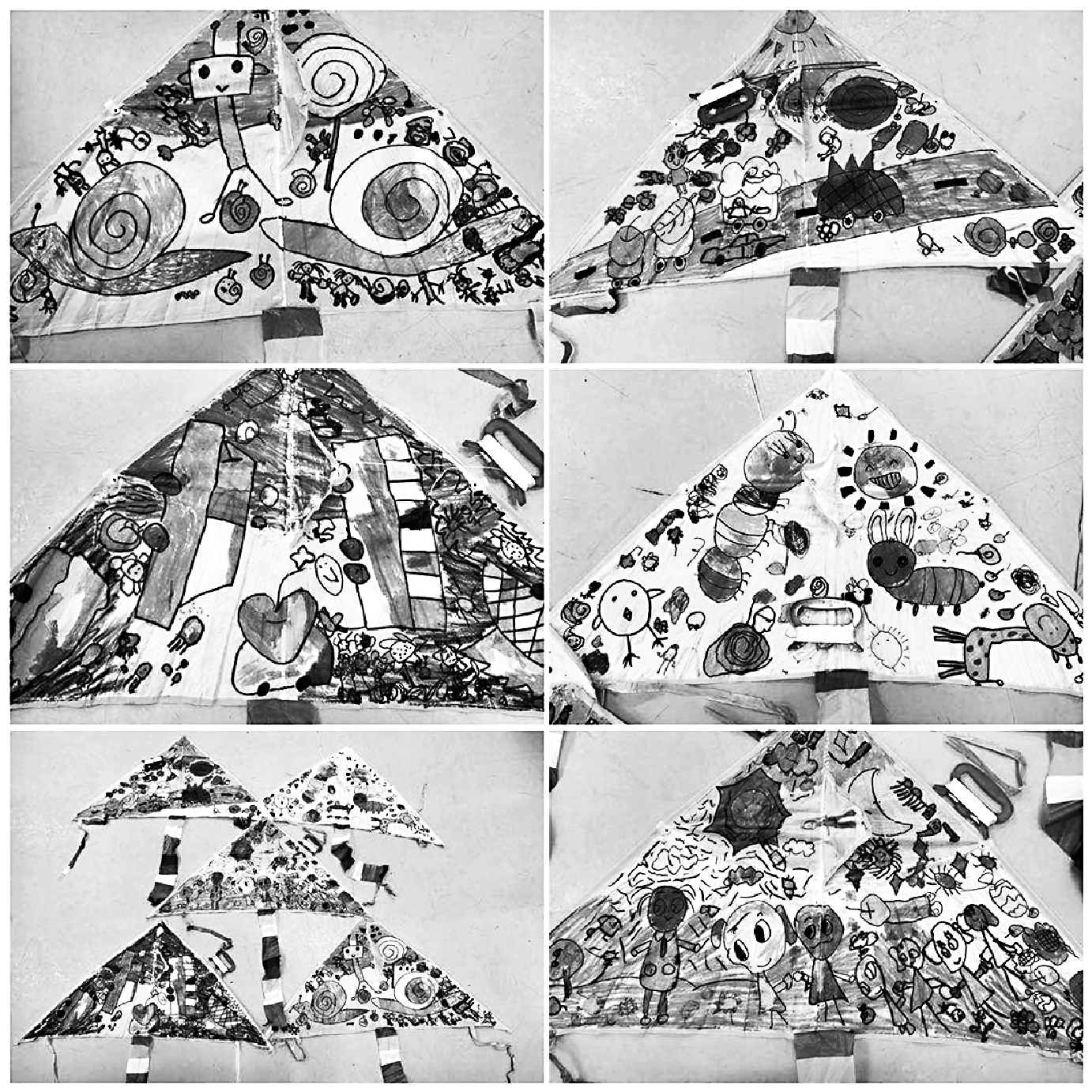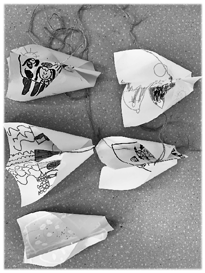 2. 师幼共同欣赏风筝设计图。