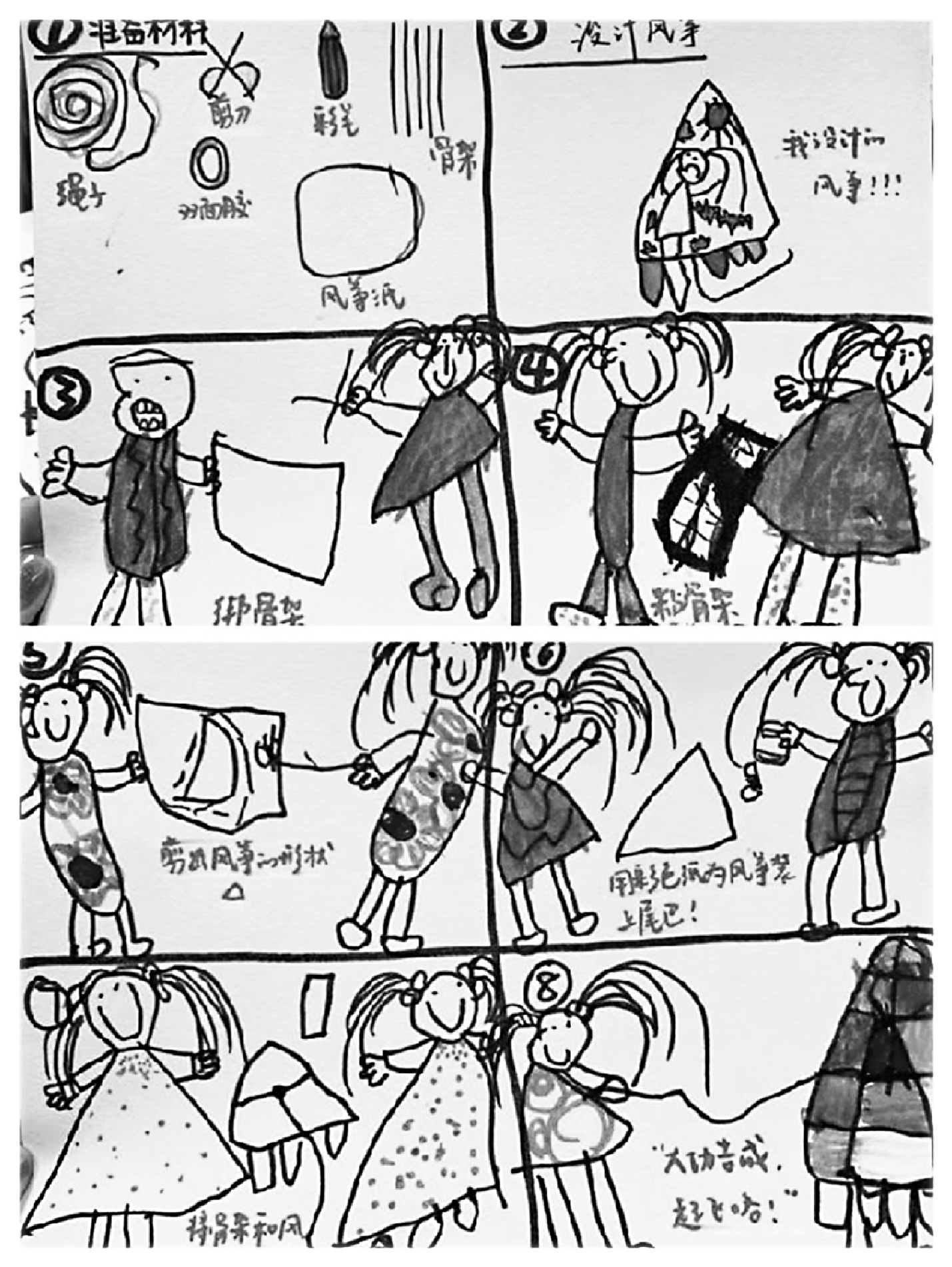 (1) 绘制风筝制作流程图,合作动手DIY风筝;