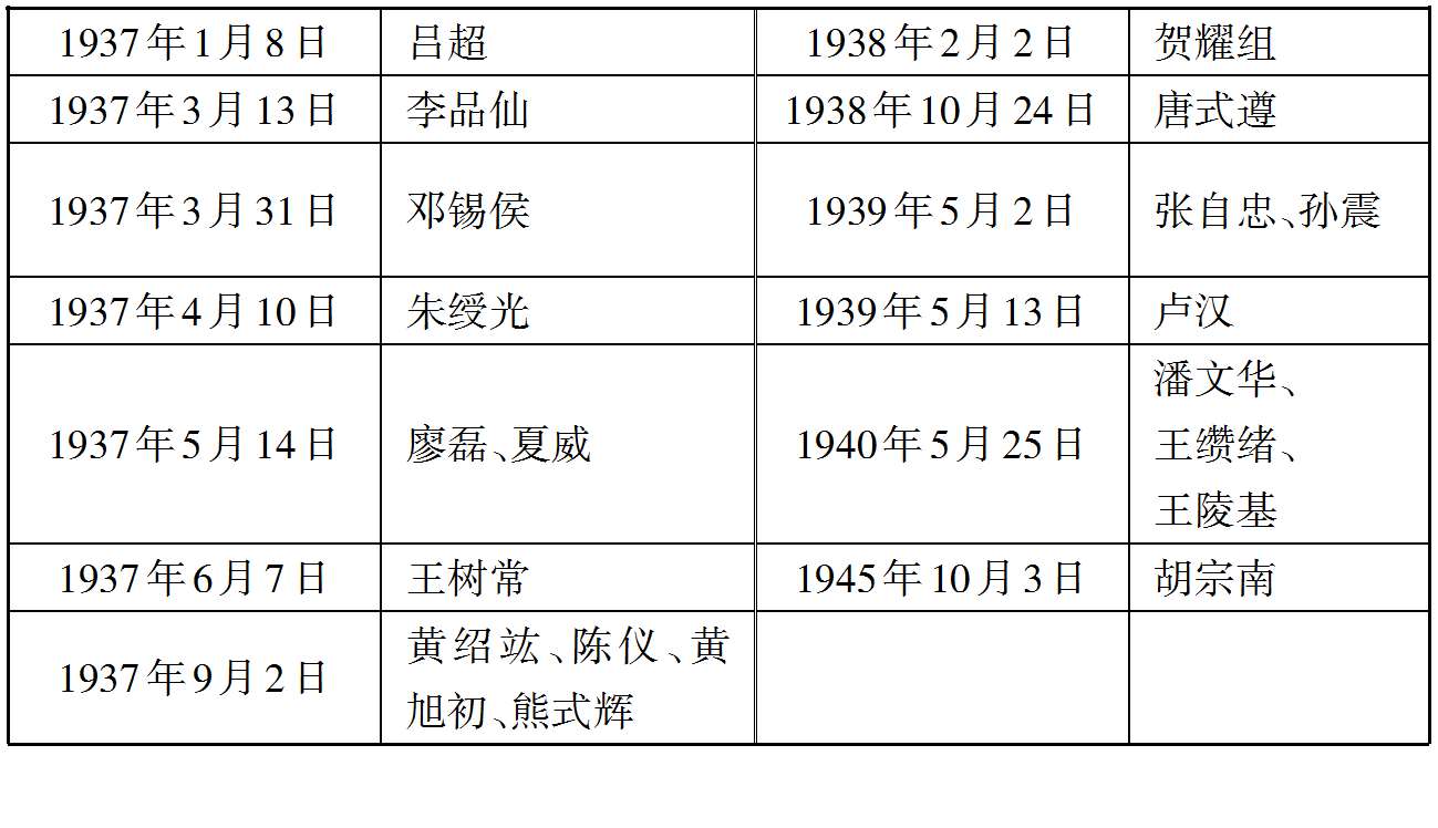 1937年5月6日,董宋珩、曾宪栋、彭毓斌、孙长胜、刘书香、黄胪初、楚溪春、傅存怀、杨士元、周士廉、刘多荃、陶柳、李涛、廉壮秋、蒋伏生、程泽润。 (74)