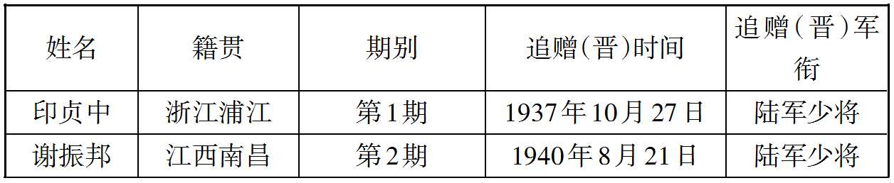 表1-11 抗战时期被追赠、追晋为陆军少将的黄埔将领统计表