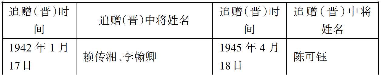 表1-10 抗战时期国民政府追赠、追晋陆军中将统计表
