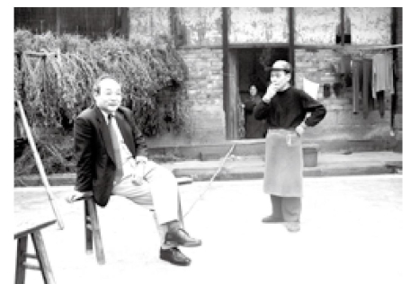 2007年11月14日,“中研院”史语所第十任所长王汎森院士访桂花坳傅斯年故居,与现住户张家友交谈(岱峻拍摄)
