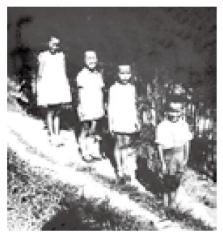 1940年代,从牌坊头到新房子路上,傅仁轨(左三)与梁柏有(左一)、劳延煊(左二)、劳延炯(左四)(梁柏有供图)