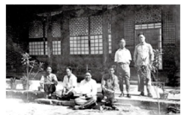 1934年董作宾(右一)与考古组弟兄,在安阳冠带巷工作站(董敏供图)
