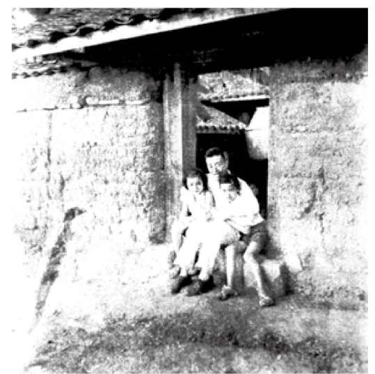 1941年初夏,梁思成与孩子们在李庄上坝月亮田门口(梁从诫供图)