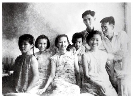 梁思成(右一)林徽因(中)及再冰、从诫与亲友摄于李庄月亮田家中(梁从诫供图)