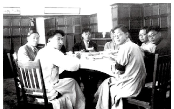 1934年北平,夏鼐(左二)与吴晗、汤象龙、罗尔纲等(汤榕供图)