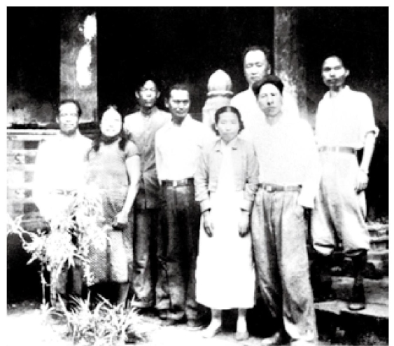 1941年10月10日,川康古迹考察团在彭山江口镇寂照庵合影。左起吴金鼎、王介忱、高去寻、冯汉骥、曾昭燏、李济、夏鼐、陈明达(李光谟供图)