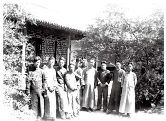 1935年春,考古组同人在安阳袁家花园合影:左起王湘、胡厚宣、李光宇、祁延霈、刘燿(尹达)、梁思永、李济、尹焕章、夏鼐、石璋如(李光谟供图)
