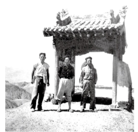 1944年西北科学考察团历史组摄于敦煌附近,左起阎文儒、向达、夏鼐(李在中供图)