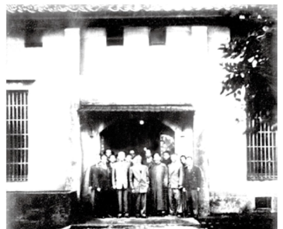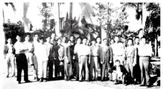 1949年11月迁台的“故宫博物院”、“中博院”等单位员工在台中糖厂的中山堂前合影(李在中供图)