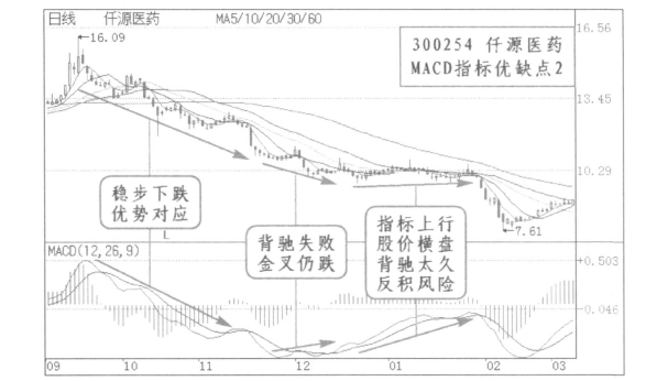 (3)背驰法:针对股价长时间运行在上涨或下跌中时,会出现MACD背驰的现象。