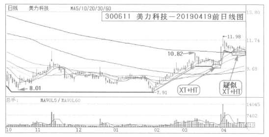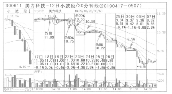 (二)下跌波段操作分析:如美力科技(300611)2019年4月17日到5月7日的下跌小波段。