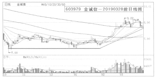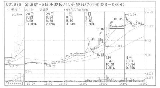 (一)上涨波段操作分析:如金诚信(603979)2019年3月28日到4月4日的上涨小波段。