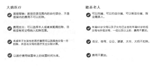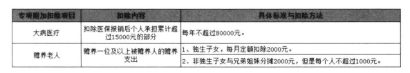 表6-3 大病医疗与赡养老人扣除内容、具体标准、扣除方法