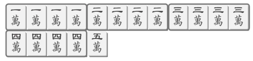 假如轮到你摸牌,牌墙上刚好剩下5张牌,而这5张牌的顺序刚好是1、2、3、4、5万。那么,从摸1万开始暗杠,一直到4万暗杠,最后一张5万是海底捞+金钩钓+杠上花,形成一个惊人的大胡。