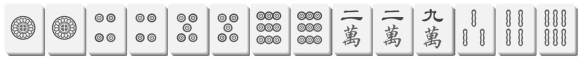 2019年五一节期间,参加一个朋友的生日宴会。饭后,主人安排在棋牌室娱乐打牌,我们这一桌打的是成都麻将。下面这手牌是一个叫张姐的女士在抓牌完毕后形成的。