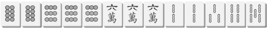 如果交换666万,剩下5个小对,三摸一可以做暗七对。但我要告诉你,做暗七对的机会数是很小的(最后一章有专题介绍),5个小对的牌型,看着是很好,但是,在其华丽的外表下,陷阱很多,弄不好连牌都听不了。而且这手牌对子很分散,结构不好,如果要做对子胡,必须要碰4对牌,难度还是很大的。相比之下,保留666万更实惠。
