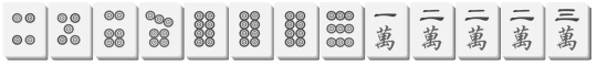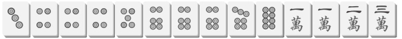 这手牌有两个刻子,只可惜这两个刻子都在连子的中间,威力的发挥受到一定的限制,如果运作得好,这手牌最少是个自摸。