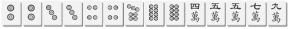 打9筒:进3、6筒和1、2、4万,均可听牌;机会数J(9筒)=5×4-6=14。