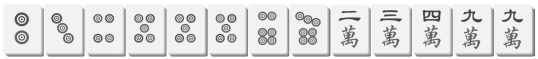打2筒:进1、2、3、4、5、6、7、8、9万,均可听牌;机会数J(2筒)=9×4-10=26。