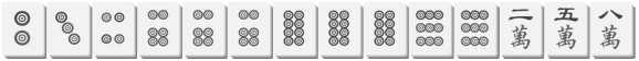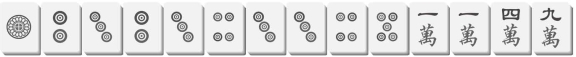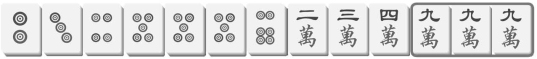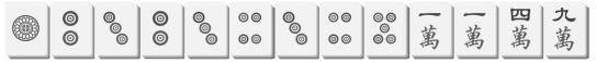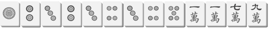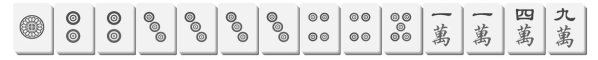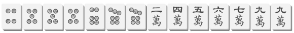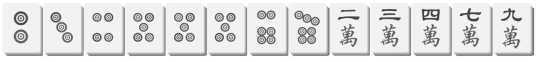 打9万:进2、3、5、7筒和8万,均可听牌,机会数J(9万)=5×4-7=13。
