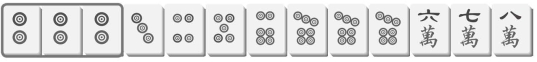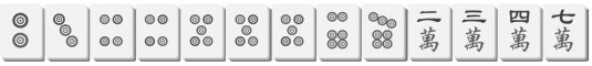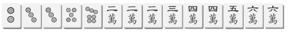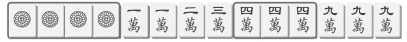 打4筒:进3、6、9万,均可听牌;J(4筒)=3×4-1=11。