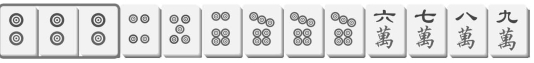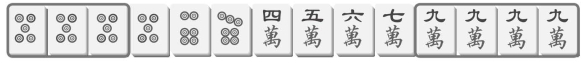 打9万:进1、2、4、5、6筒和1、2、3、4、5、6万,均可听牌,机会数J(3筒)=11×4-13=31(6筒已被对家暗杠)。