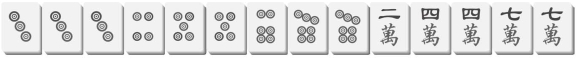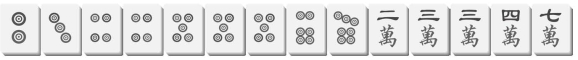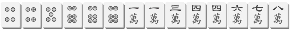 2017年一个周末应邀参加一个朋友的饭局,饭局上当话题谈到麻将时,主人特意把我的情况给大家做了一番介绍。之后,到楼上的茶楼打牌,那天观战的人比较多,下面这手牌是尾盘阶段形成的。