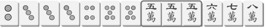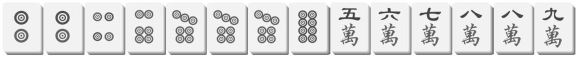 打5筒:进3、6、9万,均可听牌;J(5筒)=3×4-1=11。