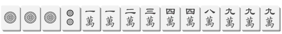 由于四家要筒子,6筒被暗杠,要想在筒子上面再做一副牌出来难度太大。左边的万子149是无听牌型中的最强组合之一,进任何一张万子都可以听牌,所以留下万子是不错的选择。而且,四家要两门花色,资源紧张,必须尽快下听,很可能最后有人听不了牌。