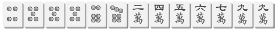 打2筒:进3、6、9万,均可听牌;J(4筒)=3×4-1=11。